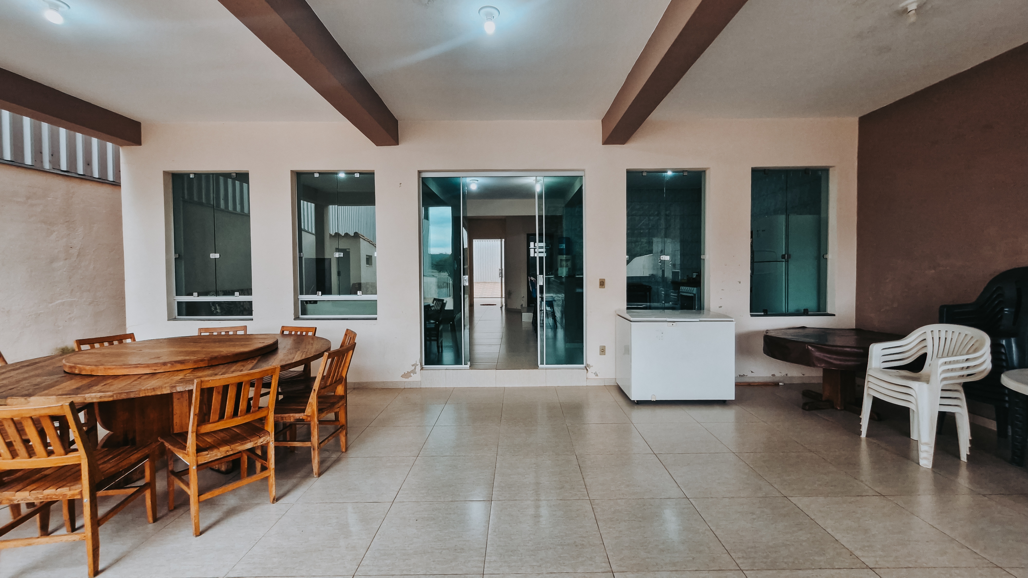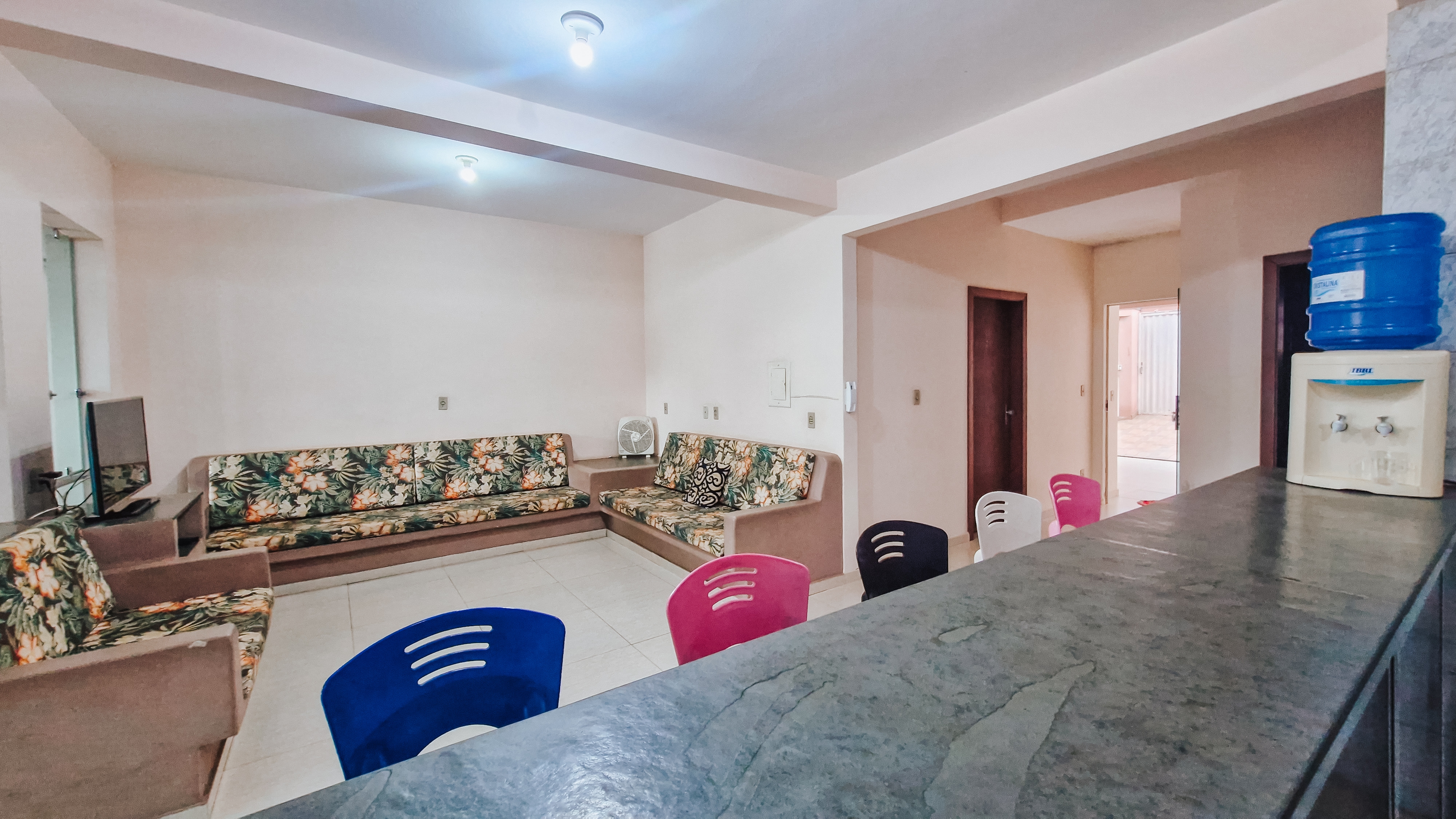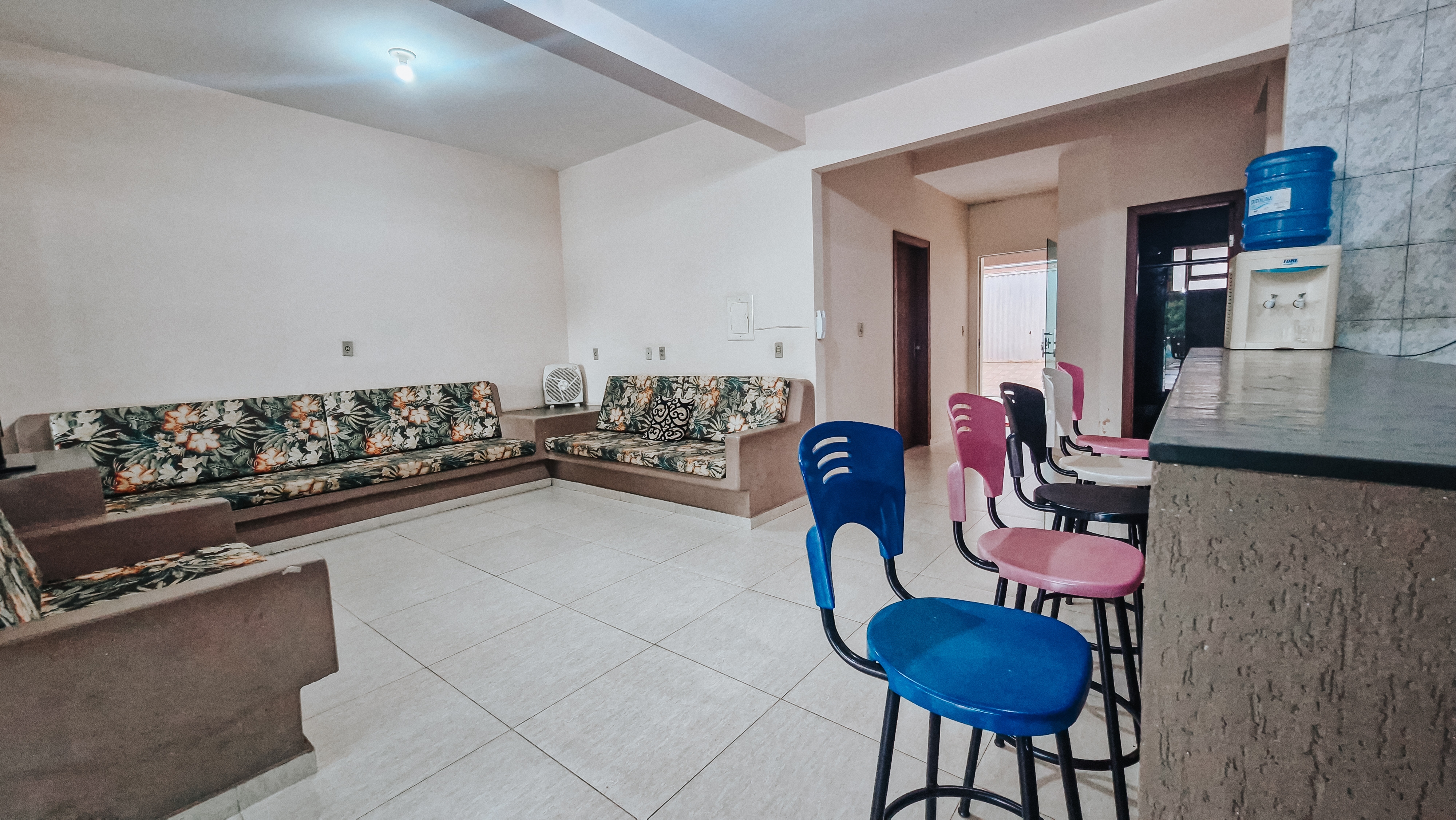 A estrutura é formada por uma casa com 2 pavimentos, perfeita para receber famílias e grupos de amigos. Na parte de baixo, uma garagem, uma suíte e um quarto com cama de casal, além de uma sala aconchegante equipada com Smart TV de 47 polegadas e WIFI liberado. A cozinha conta com todos os utensílios domésticos necessários para preparar deliciosas refeições.